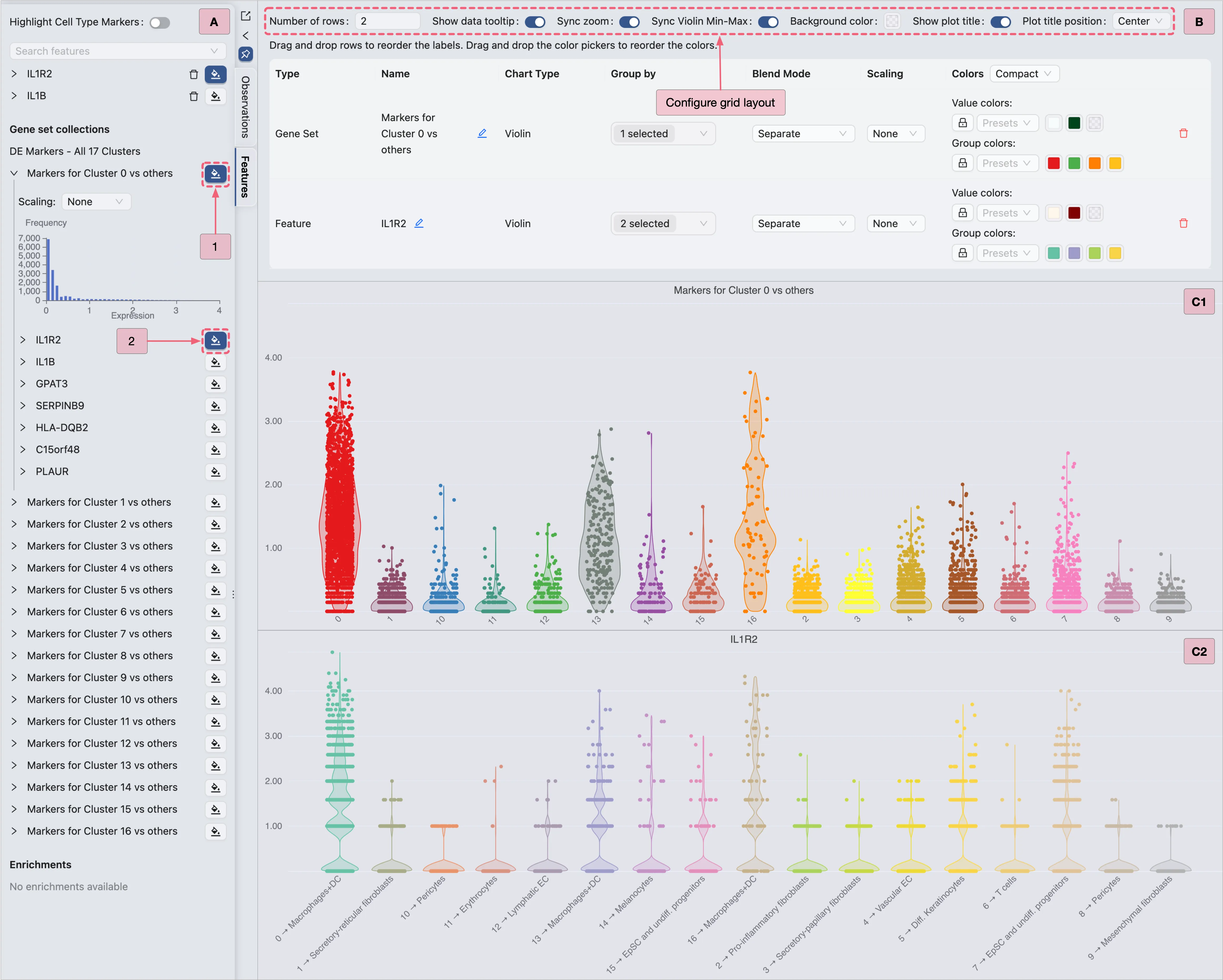 IL1R2,IL1B) for targeted visualization.