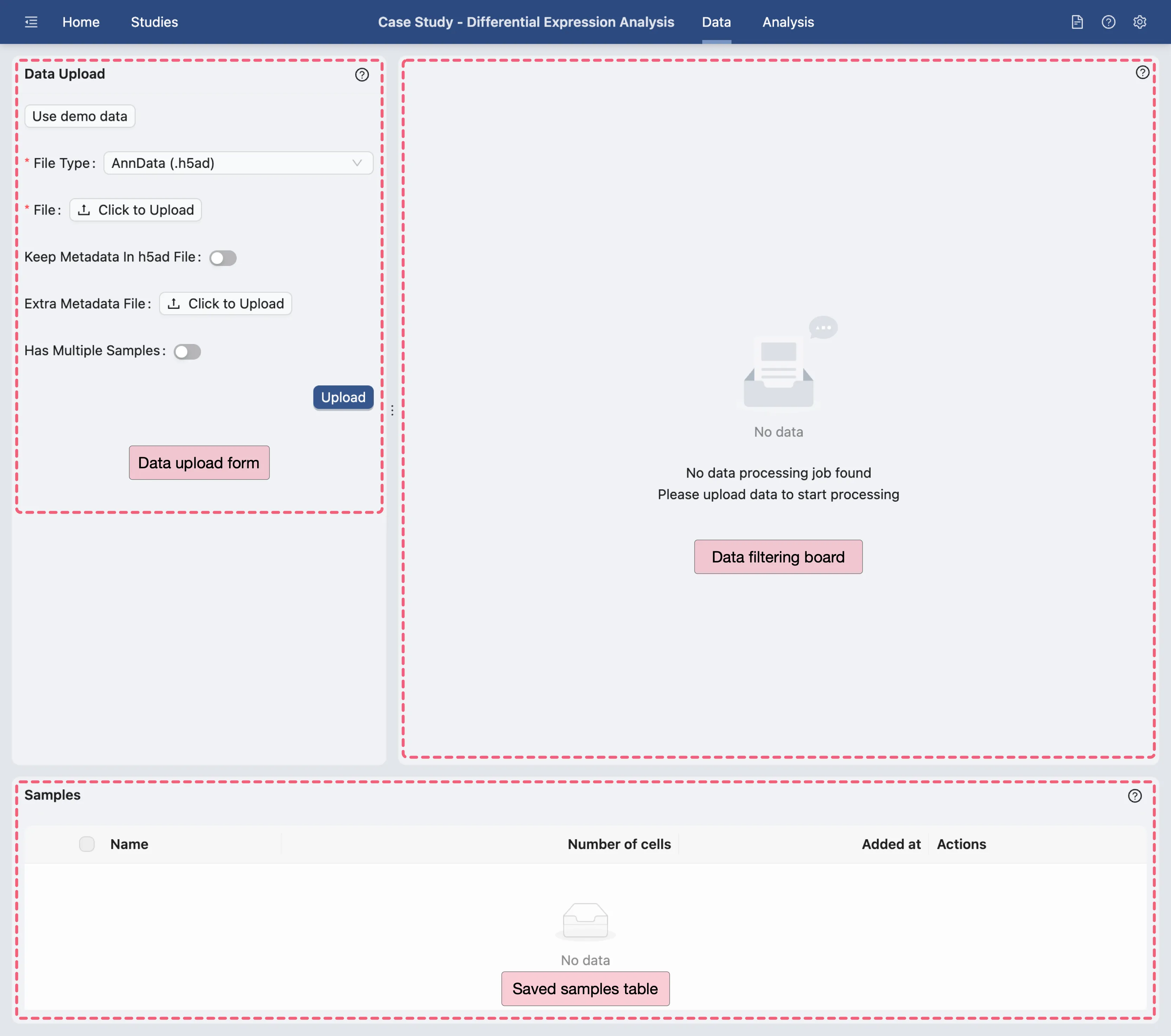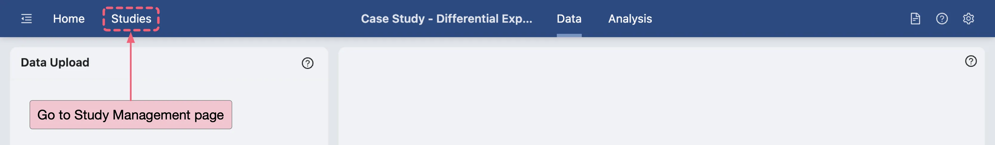 Upon creation of the study, you will be automatically redirected to the Data page of the new study.