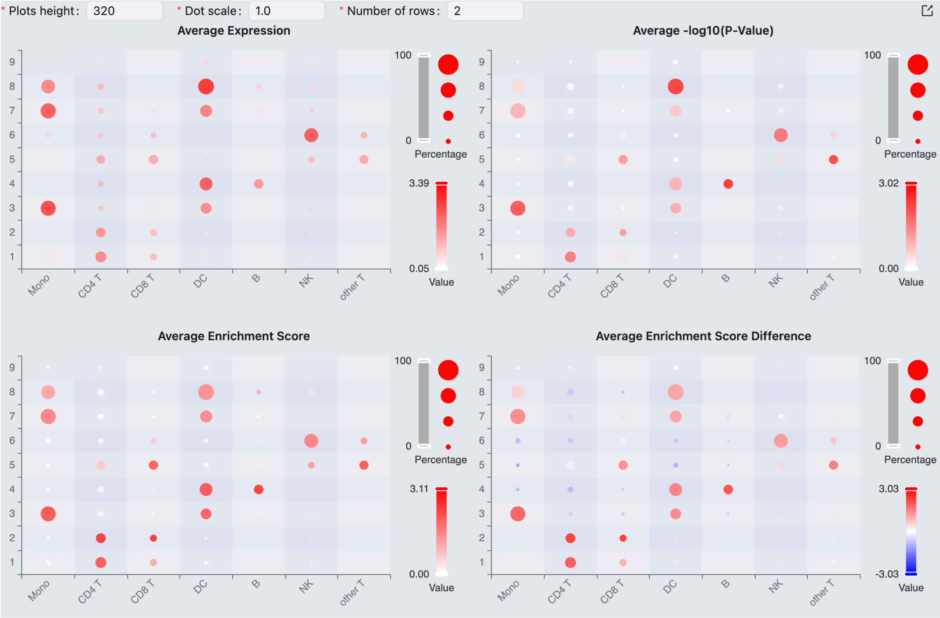 Average Percentage: The average percentage of cells in the group that express the genes in the gene set.