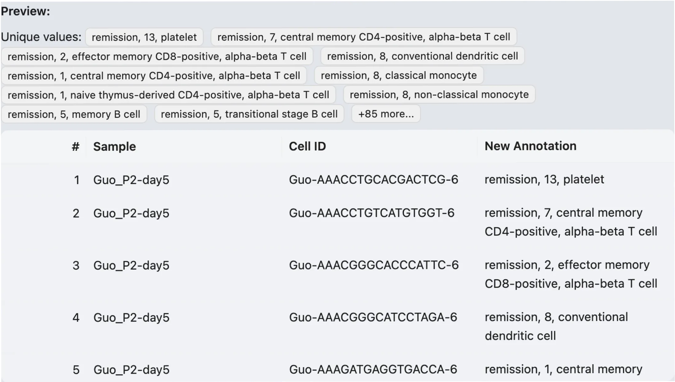 Annotation: The value of the new annotation for the cell. The title of this column is the name of the new annotation.