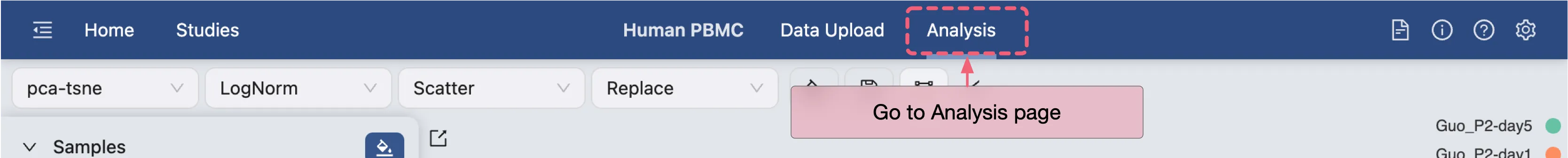 To access the Analysis page of a study, click on the Analysis button on the Study navigation bar on top of the page when visiting a study.