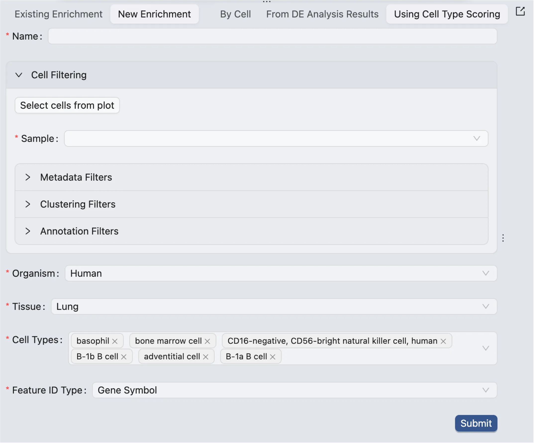 Cell Types: Choose the cell types for which you want to perform cell type scoring.
