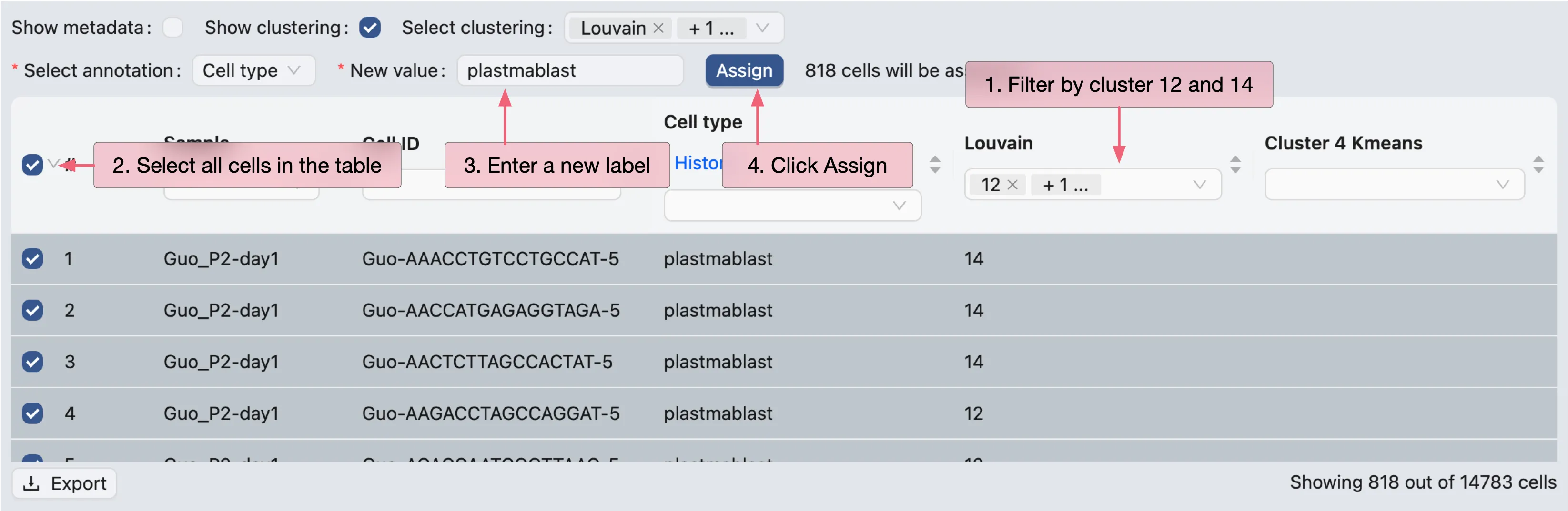 To annotate other clusters and sub-clusters, repeat the same process.