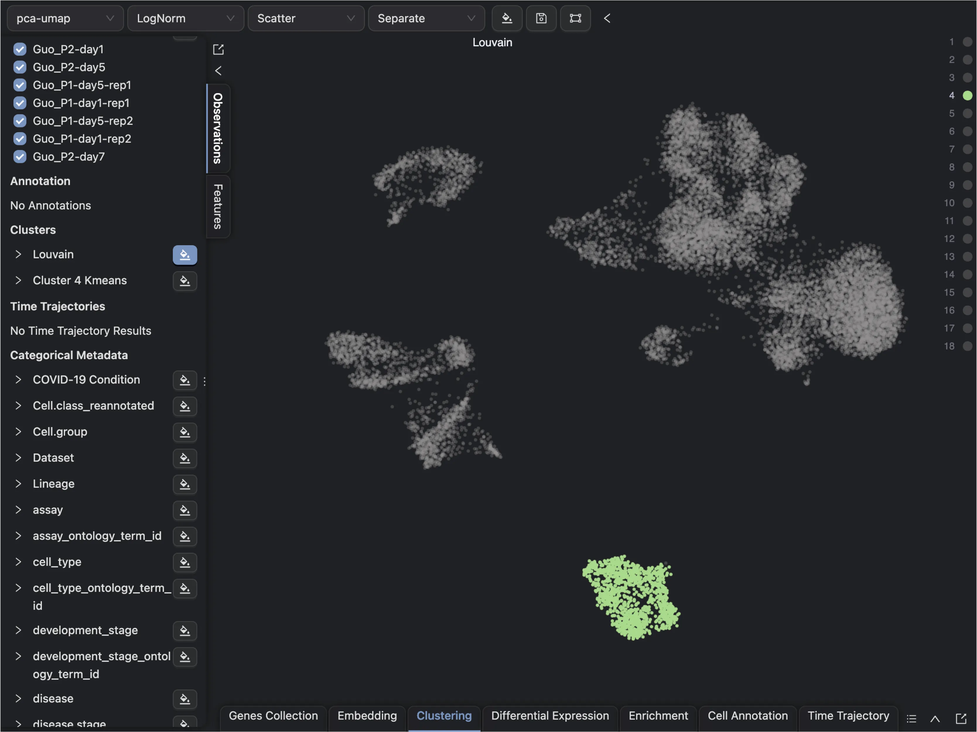 Next, follow these steps to perform sub-clustering on Cluster 4:
