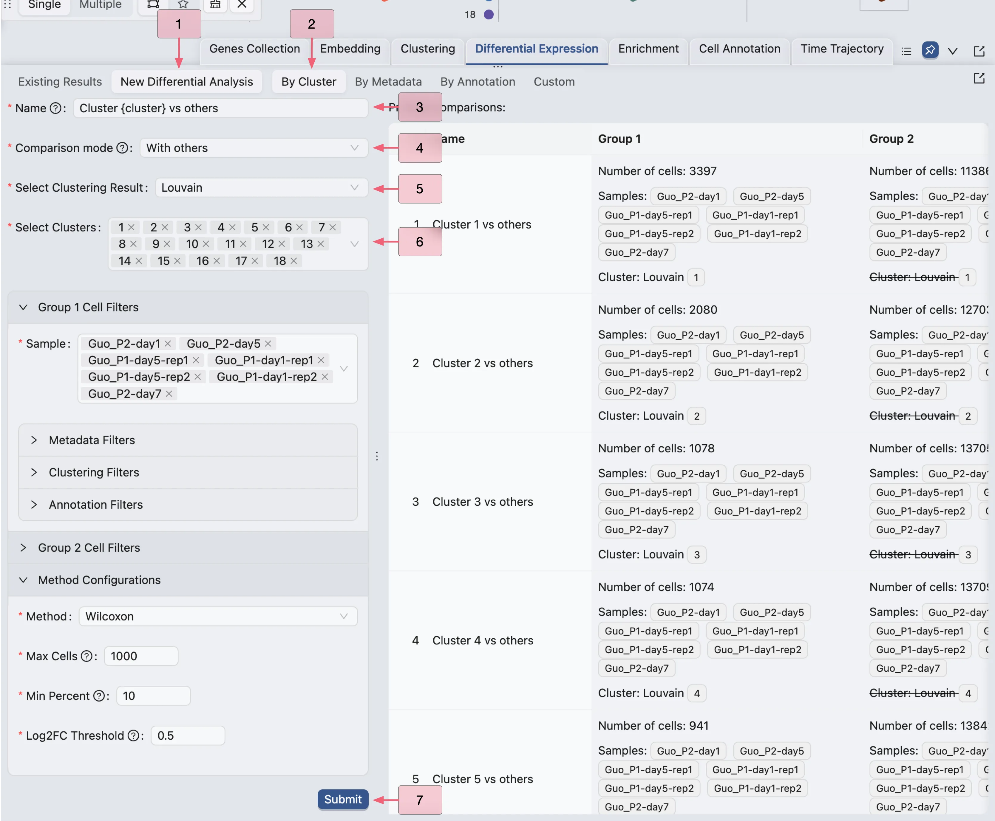 Submitto start the DE analysis.