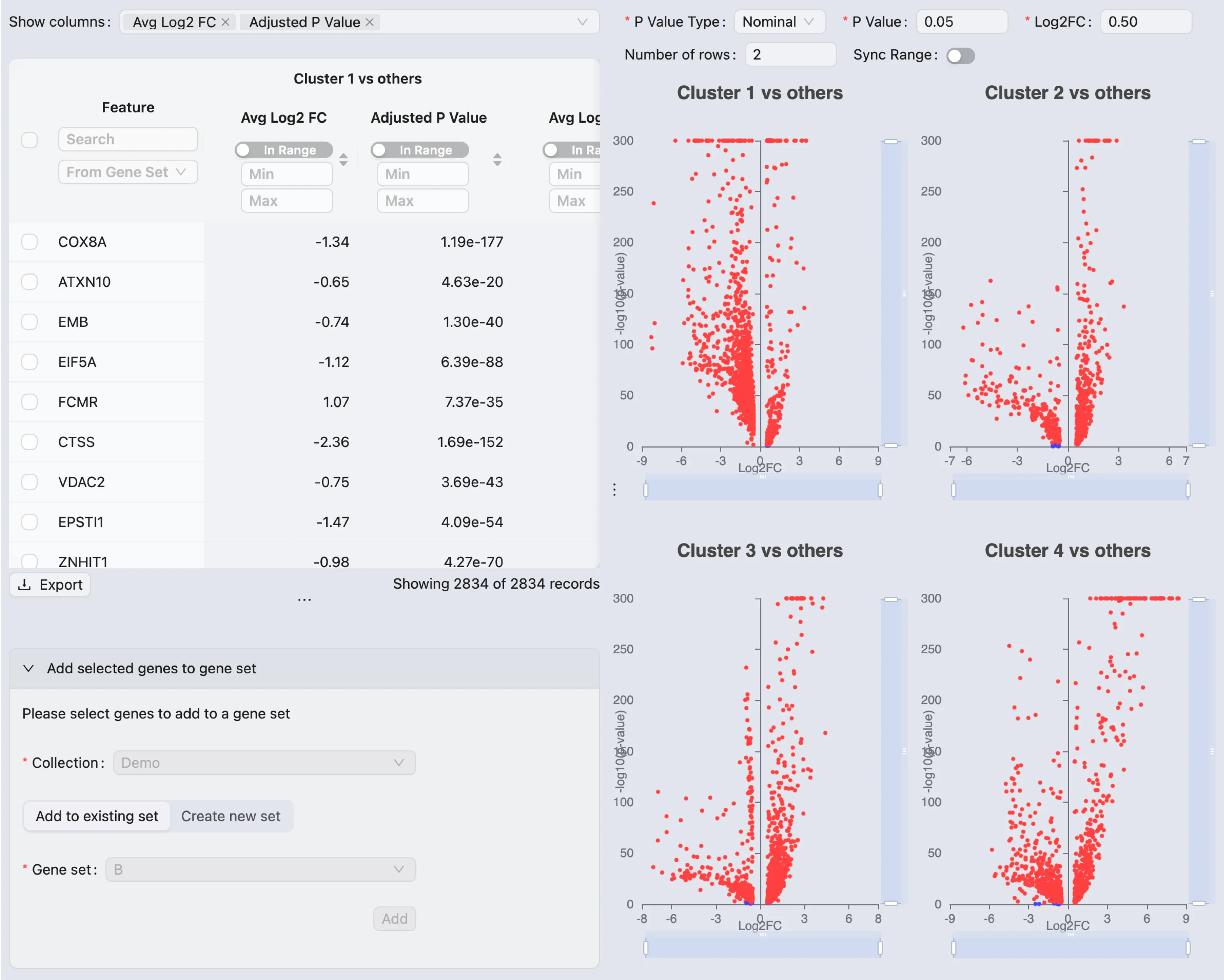 Once the job is completed, the sub-clustering results will be added to the Clustering Table, and ready for visualization in the Left Sidebar.